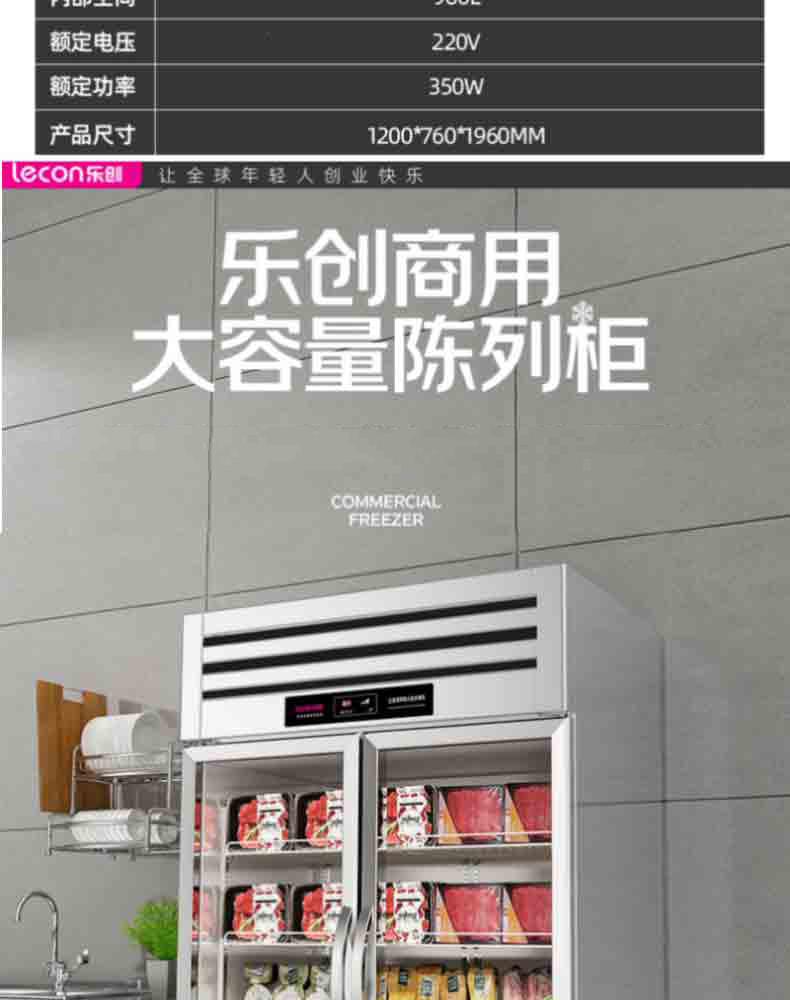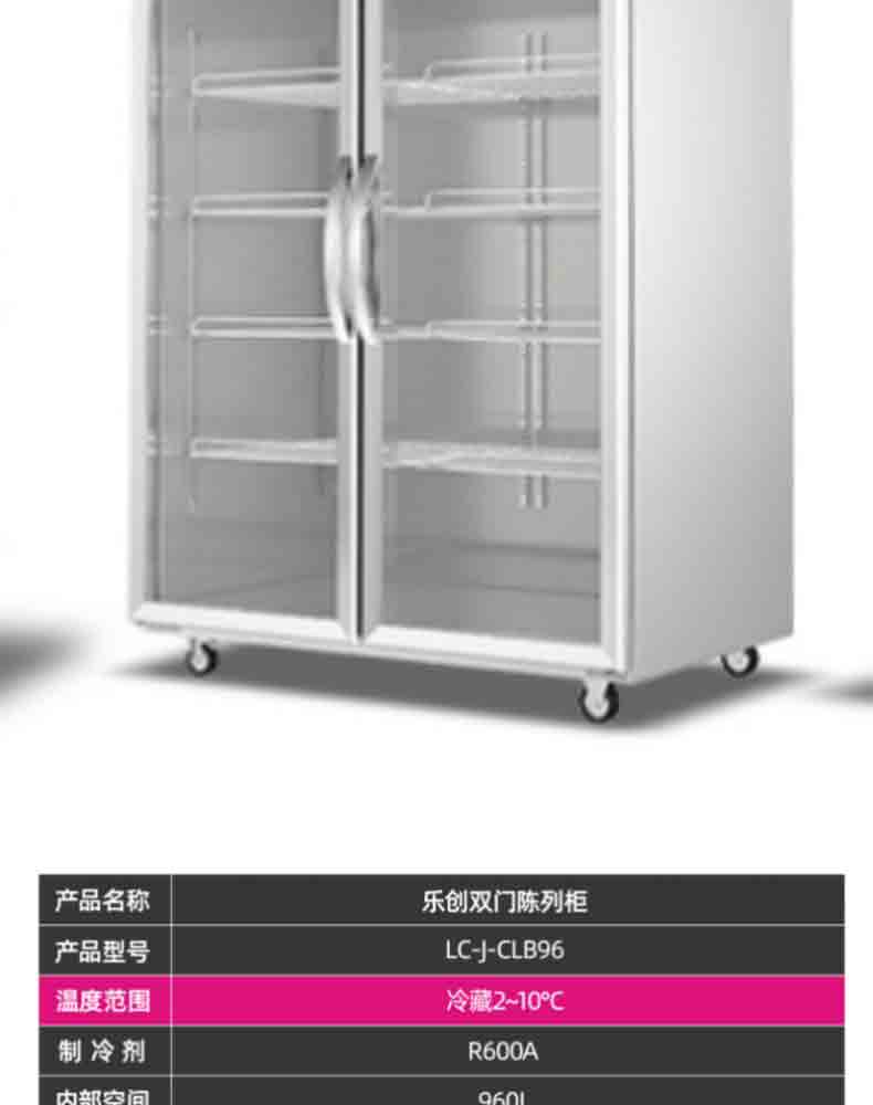 冷藏展示柜 乐创/lecon LC-J-CLB96 直冷 双门