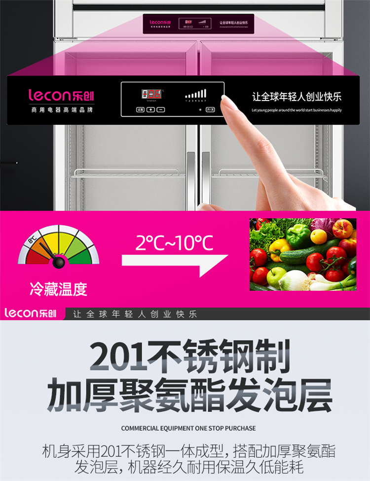 冷藏展示柜 乐创/lecon LC-J-CLB96 直冷 双门