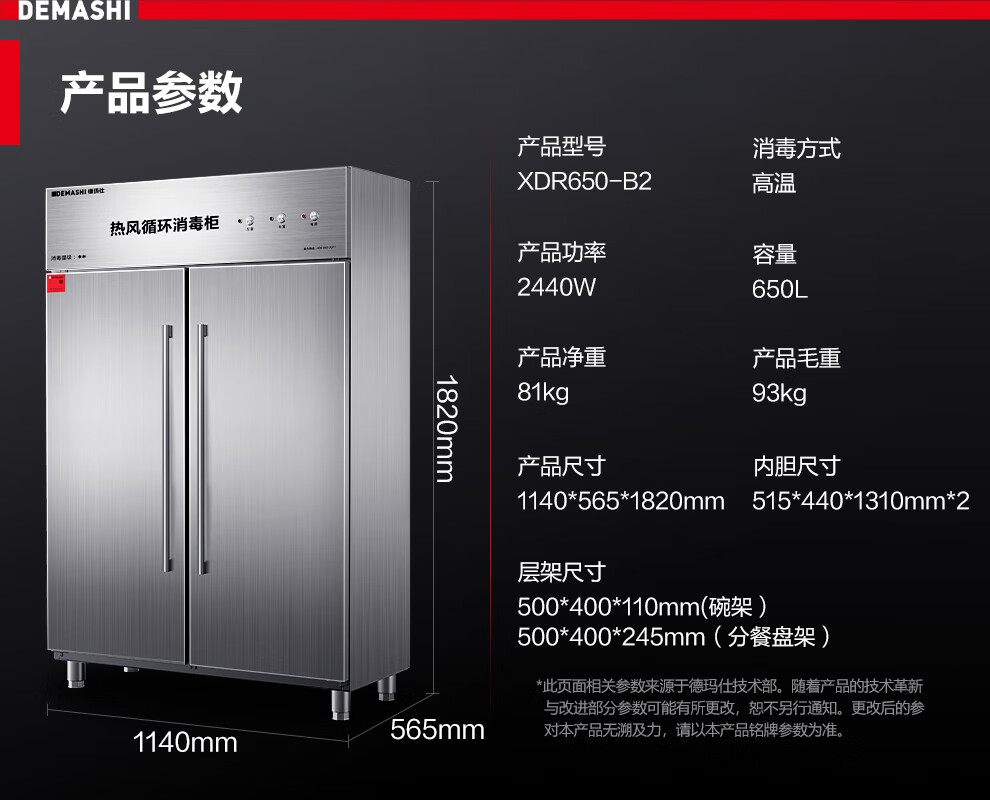 消毒柜 德玛仕/DEMASHI XDR650-B2 双门 电脑式
