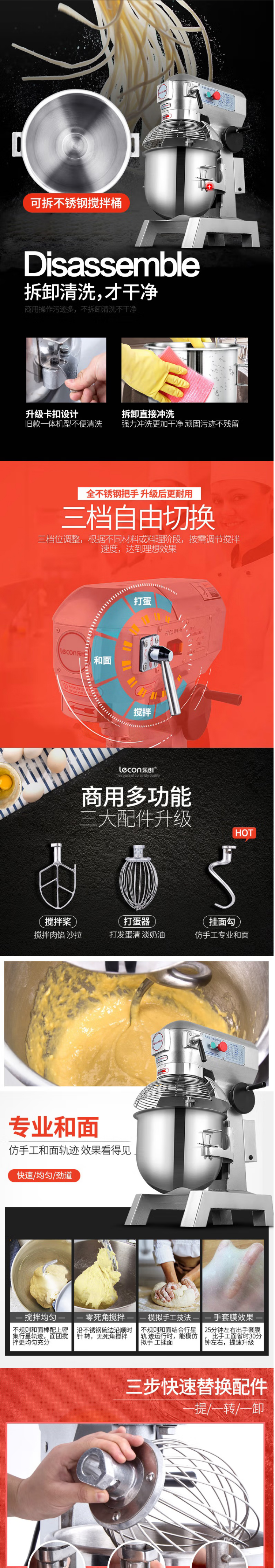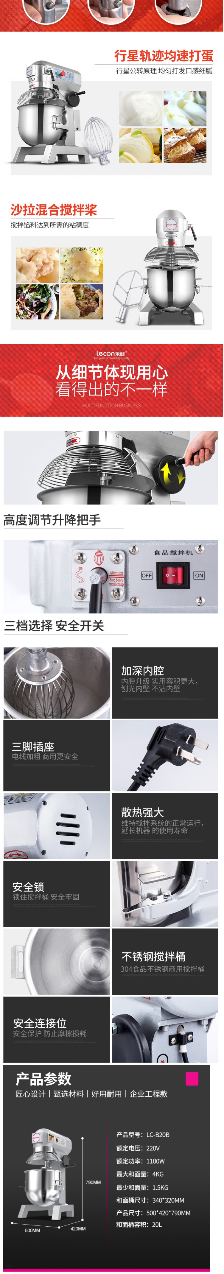 商用打蛋搅拌机 乐创/lecon LC-B20B 旋钮式+按键式