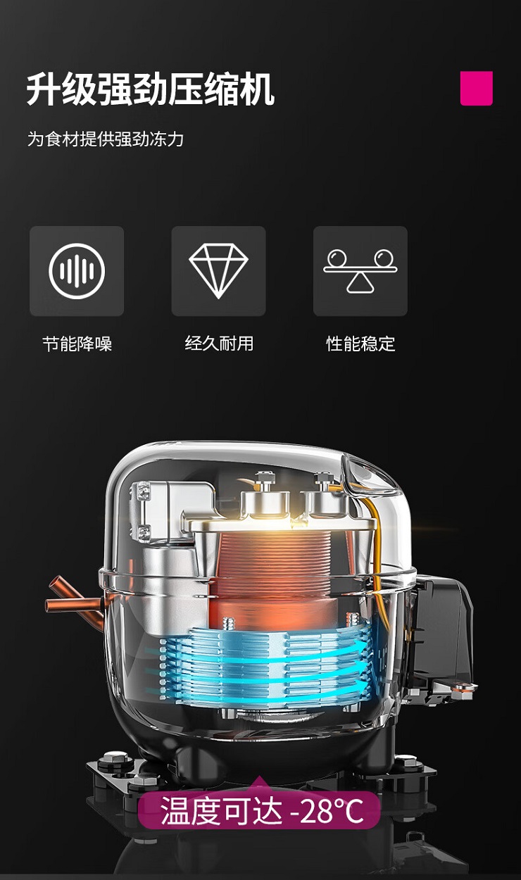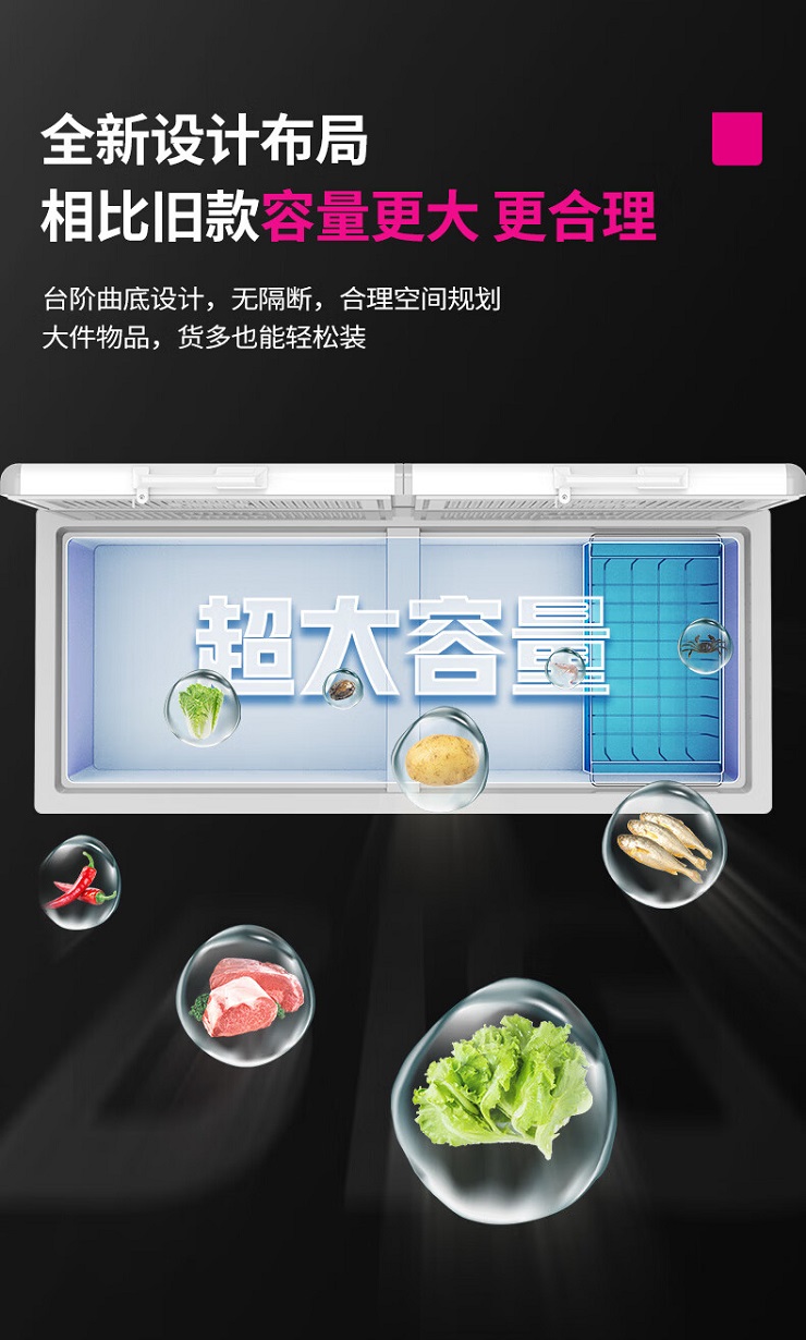 此冰柜内部为一体结构,温度范围:-5~-28°C,总容积为975L,无单独冷冻室冷藏室